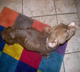 | Little Pitty Libby was found tied to a tree with a half a bag of dog food next to her, but not in range for her to eat. Libby was emaciated. No one knows how long she was tied there, but a nice couple found her and brought her into the shelter in Howard County. We took Libby into rescue, but she could not leave the vets office. Libby was very sick. She was eating, but couldn't hold anything down. After 6 days of being hospitalized, Libby died. When Libby died, she went knowing what love finally was. The whole time she stayed at the vets office, Libby was showered with attention, kisses, hugs and lots of people caring about her. Don't let Libbys death be in vain. Please, if you know of anyone abusing or neglecting an animal, please call you local police, Animal Control or Humane Society. We, the people, are their only hope. Speak up for the animals. |